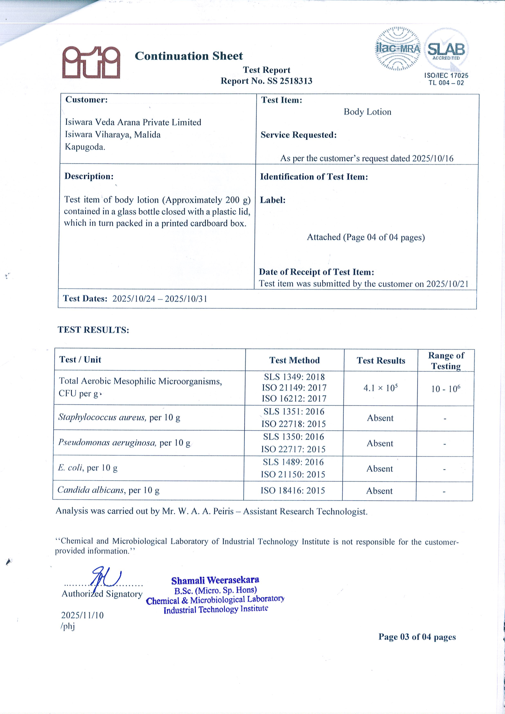 Indulge in the gentle care of nature with Isiwara Ru Soba Body Lotion, enriched with a harmonious blend of Hela wedakama herbs and pure natural oils.